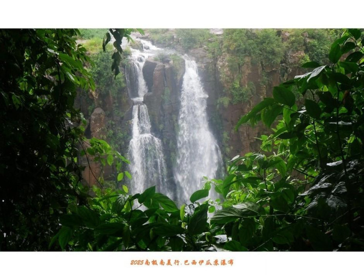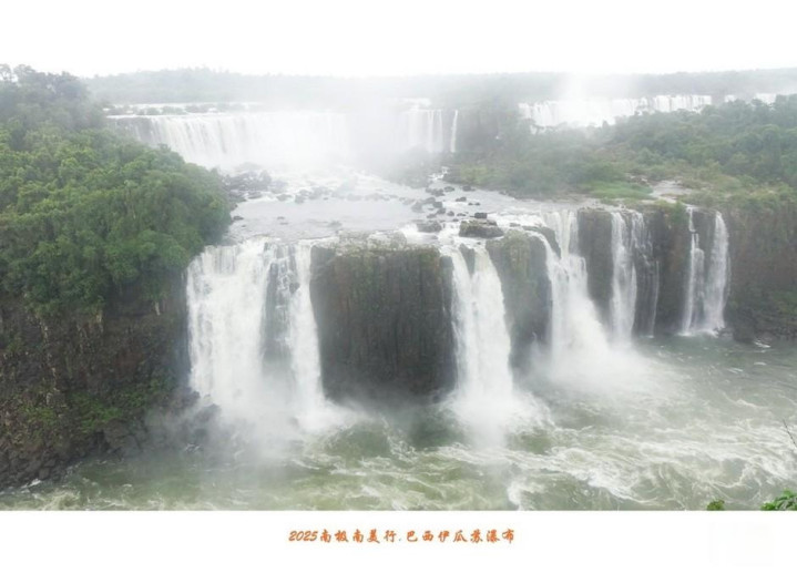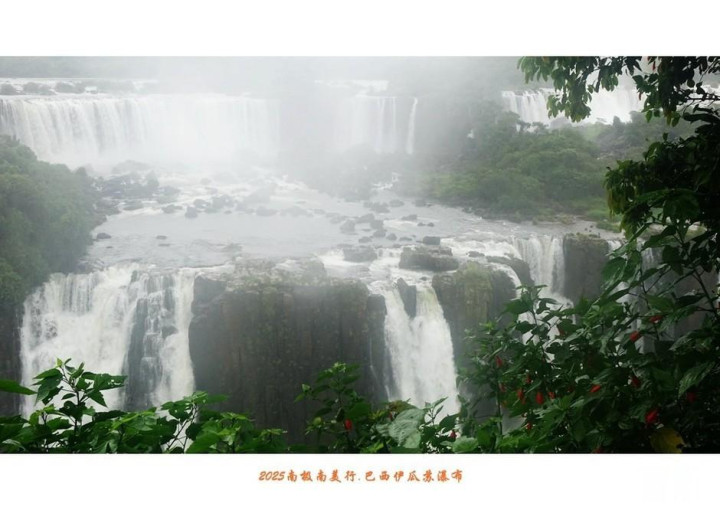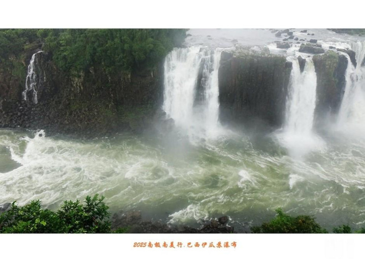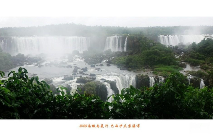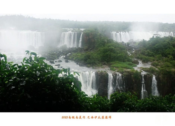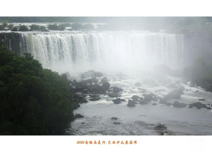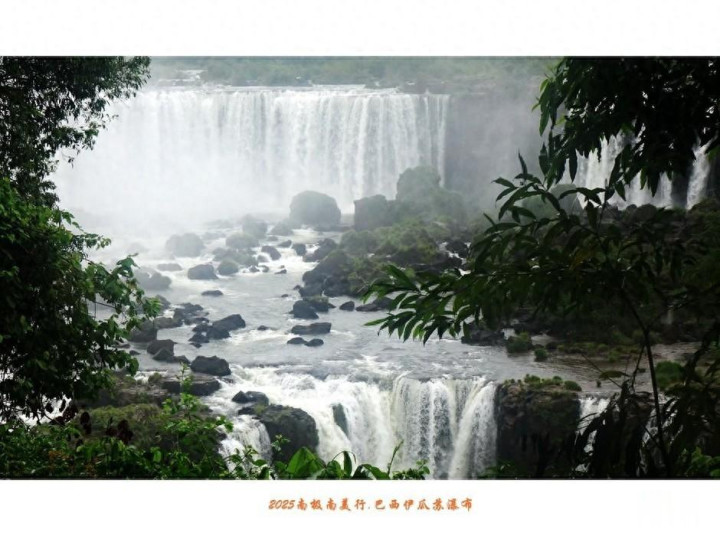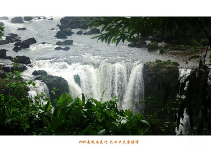 伊瓜苏瀑布除了具有声势同样惊人的水量,瀑布下的河面上还显露出星罗棋布的岩石,石上长满绿茸茸水草,遮掩住峥嵘头角,在水中央与两岸丛林相呼应。