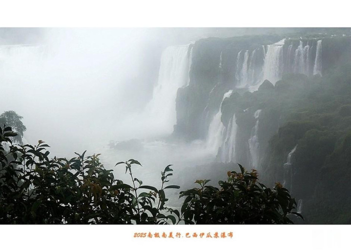 瀑布比较大的地段,瀑布喷发的水雾非常之大,以至于镜头里成了这番景象。